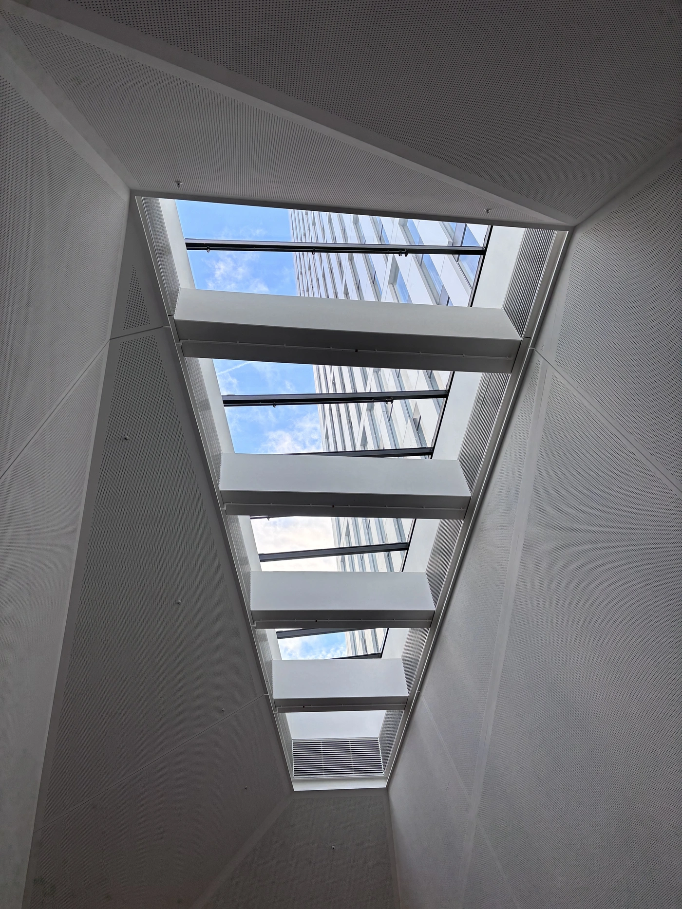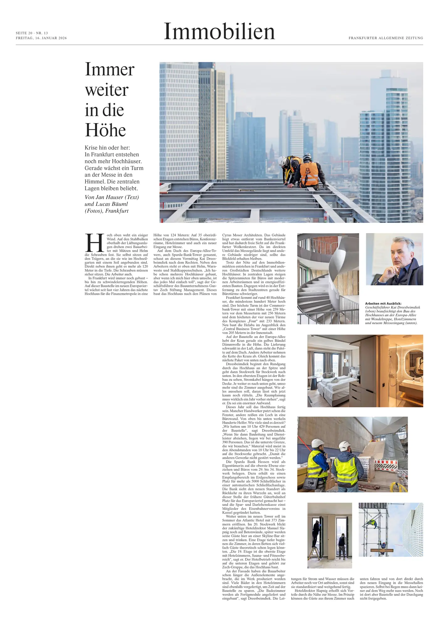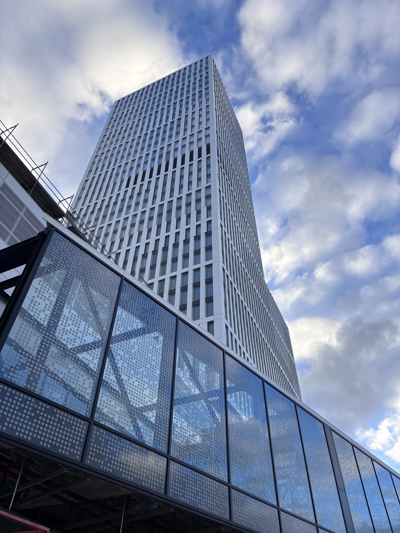 Die Sparda-Bank Hessen bezieht sechs Etagen des Turmes und wird zusätzlich über eine Customer-Lounge mit einem Empfang für Kundeninformationen, Geldautomaten sowie einer allzeit verfügbaren Mietfachanlage verfügen. Das ATLANTIC Hotel bietet 373 Zimmer und verfügt über individuell kombinierbare Veranstaltungsräume für Meetings, Tagungen, Events und private Empfänge. Das Gebäude gliedert sich in den 5-geschossigen hellen Sockel, der zu großen Teilen als Pfosten-Riegel-Fassade ausgeführt ist. Für eine homogene Wirkung des Sockels befinden sich in Teilbereichen die Fensteröffnungen hinter Aluminium-Glattblechen, welche zur Belichtung und Sichtverbindung gelocht sind. Auf der Nord-/Ost-/Westfassade ist die geschlossene Sockelfassade leicht zurückversetzt und in einer dunklen Farbe abgehoben. Die Fassade des Hochhauses wird als elementierte Doppelfassade hergestellt. Gestaltprägend sind die in der Breite variierenden Vertikallisenen. Diese sind unterschiedlich ausgerichtet und als 3-geschossige Pakete ablesbar. Die Fassade überspielt das Technikgeschoss im 20. OG und bietet somit ein gleichmäßiges Fassadenbild vom 5. bis 34. Obergeschoss.